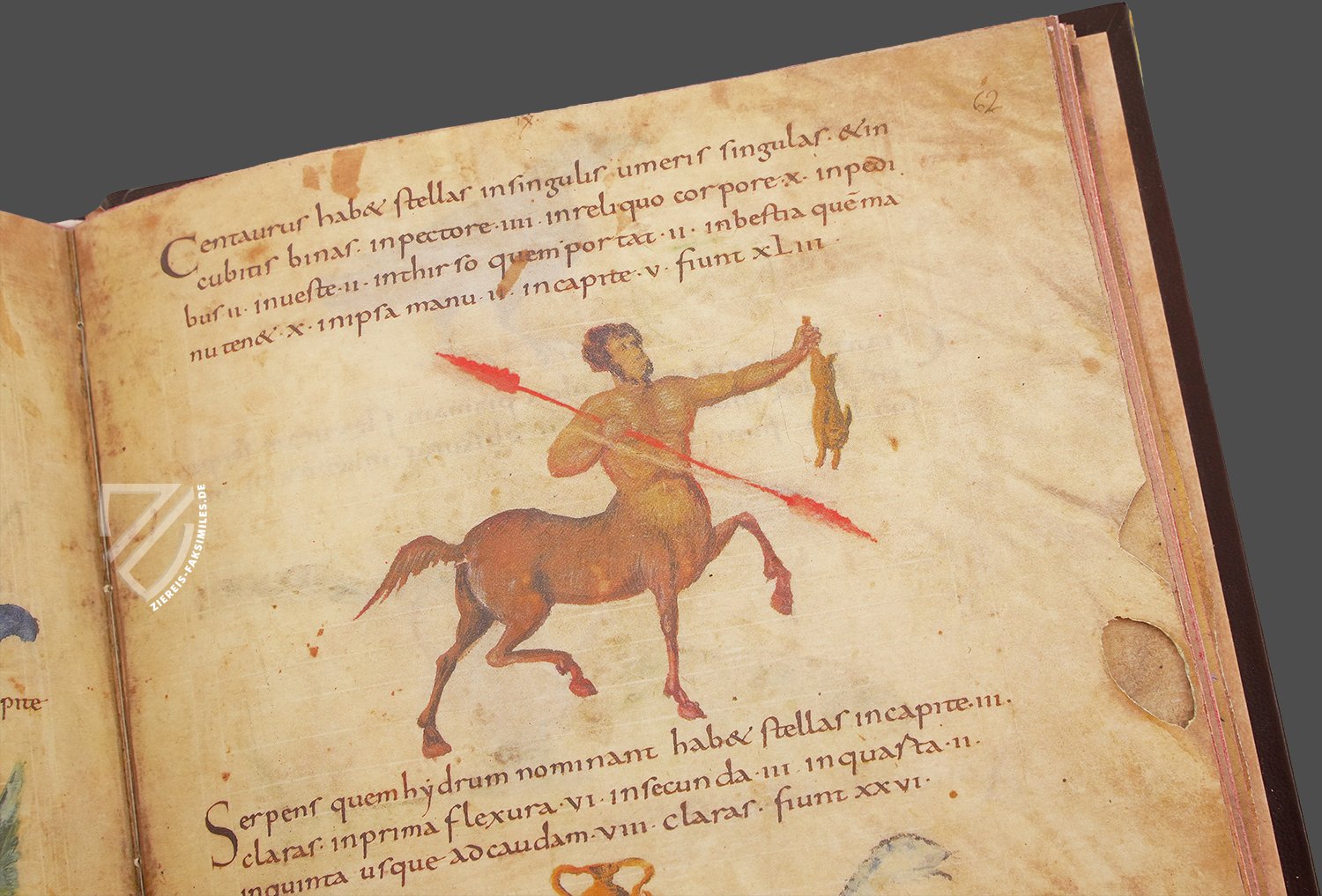 In der Spanischen Nationalbibliothek wird diese kostbare Handschrift der Karolingerzeit aufbewahrt. Auf 152 Seiten im Format von 31,5 x 25 cm breitet sich die faszinierende Welt der astronomischen Wissenschaft des 9. Jahrhunderts aus. Im Rückgriff auf antike Handschriften werden in dem astronomischen Handbuch nach dem Sternbilderzyklus des Aratos Ausführungen zu Kosmologie und Zeitrechnung aufgeführt. Das astronomische Kalendarium dient als Hilfsmittel zur Berechnung astronomischer Daten. Dieser Kalender erlaubt ziemlich genaue Berechnungen von liturgischen Festen, hatte aber auch eine religiöse und politische Dimension.