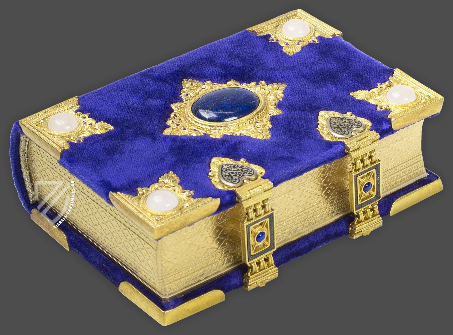 Lorenzo de Medici gab das kleine Büchlein, das laut seinem Zusatztitel für Frauen bestimmt war, sehr wahrscheinlich als Hochzeitsgeschenk für seine Töchter in Auftrag. Die Gestaltung des Werkes wird dem berühmten italienischen Buchkünstler Francesco Rosselli zugeschrieben. Der Renaissancekünstler arbeitete als Kupferstecher, Miniator, Kartograf und Maler und war neben Francesco di Antonio del Chierico der berühmteste Vertreter der Florentiner Schule. Jede der 233 Textseiten der Handschrift ist mit einem hochwertigen dekorativen Element geschmückt. Schon der außergewöhnliche Einband des Buches lässt das Herz jedes Kunstliebhabers höherschlagen. Er besteht aus violettem Samt, welcher mit Beschlägen und Eckbeschlägen aus ziseliertem vergoldetem Silber versetzt wurde und auf dem Vorder- und dem Rückdeckel mit einem großen Lapislazuli und vier Rosenquarzen besetzt wurde.