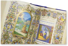 - 9 ganzseitige Miniaturen, jeweils umgeben von kunstvollem Blumenschmuck aus Girlanden und Kränzen. Auf jeder Seite finden sich zahlreiche historisierte Initialen, Friese und andere Ornamente.