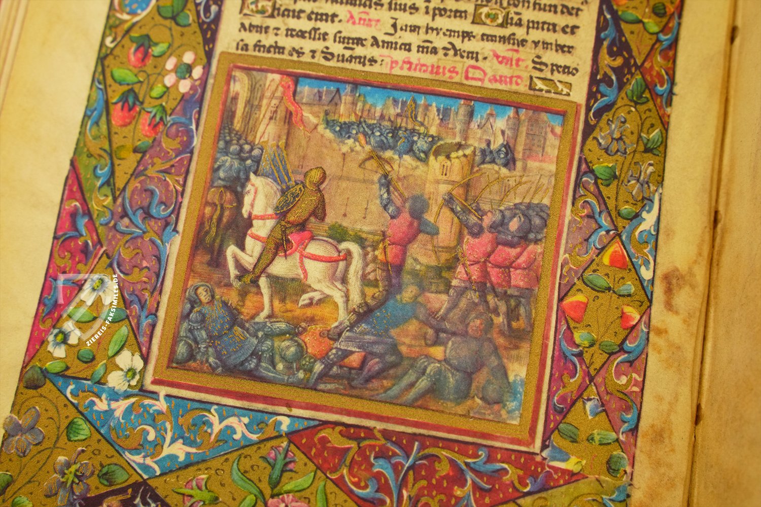 Stundenbücher waren die wohl beliebteste Buchgattung des Mittelalters. Die Codices wurden zum Gebet und zur privaten Andacht angefertigt und waren besonders im Adel weit verbreitet. Das Stundenbuch des Ludwig von Orléans ist ein spektakuläres Beispiel dieser populären Manuskripte. Die illuminierte Handschrift ist mit 90 eleganten Miniaturen in aufwendig gemusterten Rahmen geschmückt. Heute befindet sich die kostbare Originalausgabe des Stundenbuches in der russischen Nationalbibliothek in St. Petersburg.