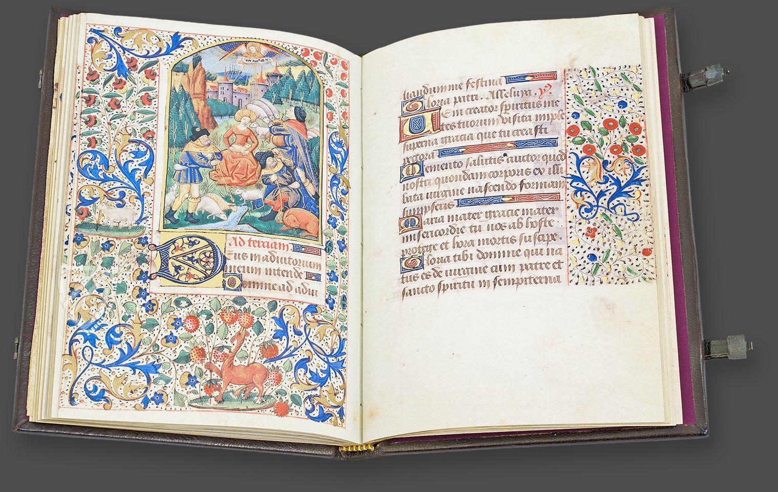 In der portugiesischen Nationalbibliothek in Lissabon wird ein besonderes Stück der französischen Buchmalerei des 15. Jahrhunderts aufbewahrt: das sogenannte Stundenbuch von Rouen. Entstanden um 1475 in Rouen, wird die prachtvolle Ausstattung dieser Handschrift dem Meister der Échevinage de Rouen zugeschrieben. Dieser war der stilprägende Künstler des französischen Kunstzentrums zu dieser Zeit. Das Stundenbuch von Rouen glänzt mit 29 ganzseitigen Miniaturen, feinster und qualitätvollster Ausstattung und großer Kunstfertigkeit der Malereien. Ein wahres Schmuckstück der spätmittelalterlichen Buchmalerei!