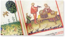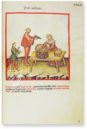 Der luxuriöse Bilderzyklus des Codex wurde in der Lombardei angefertigt. Die hochwertigen Bilder spiegeln die traditionelle Malerei des großen Buchkünstlers Giovanni de Grassi wieder. Sie zeigen in grenzenloser Fantasie die unterschiedlichsten Aspekte der mittelalterlichen Medizin. Die Szenen, die sich mit der Gesundheit und dem Heilen von Krankheiten befassen, sind meist eingebettet in alltägliche Szenen aus dem Leben im Mittelalter. So nehmen die fabelhaften Bilder ihre Betrachter mit auf eine Reise in die Welt längst vergangener Zeiten.