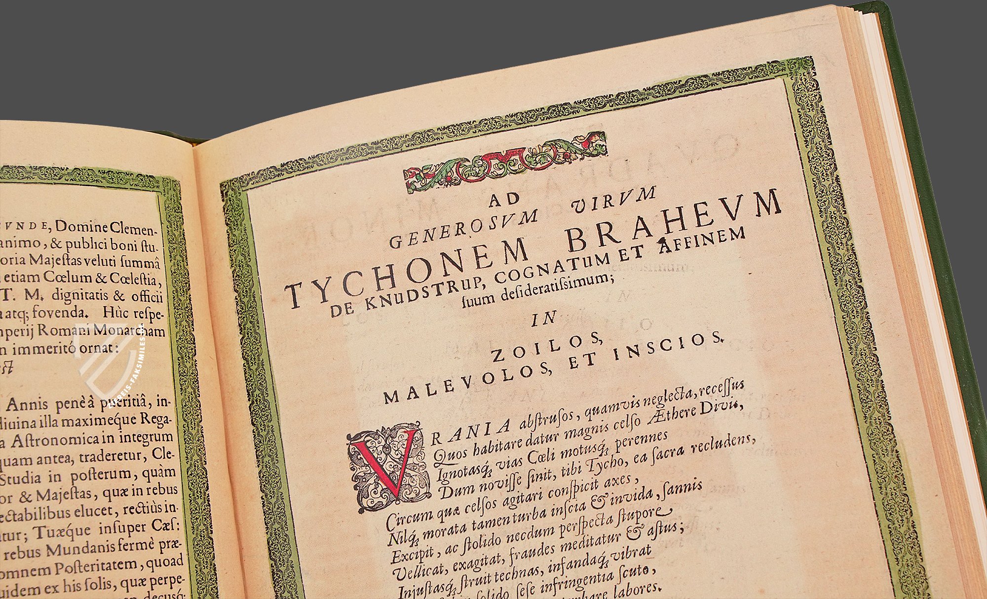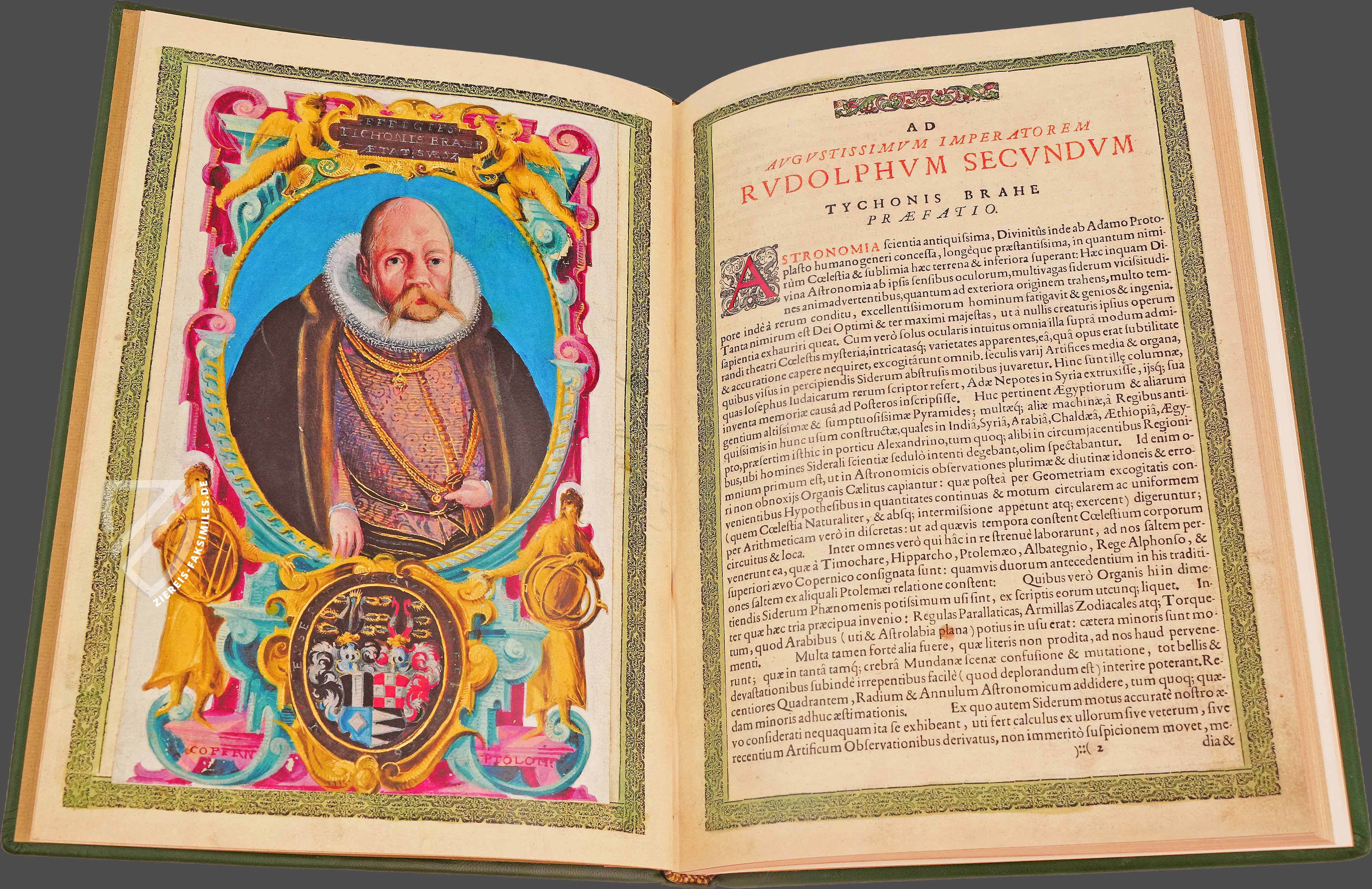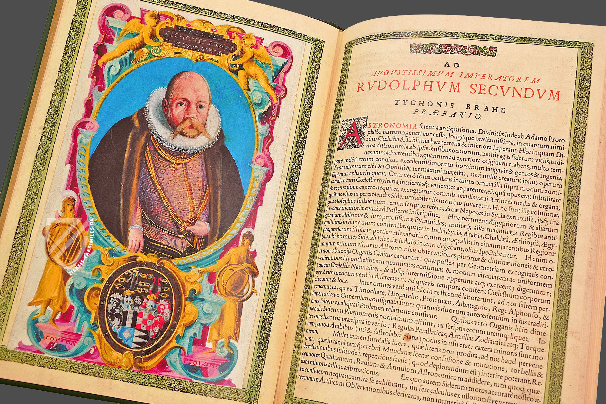 Tycho de Brahe (1546–1601) ging als Astronom vor allem wegen seiner unglaublich umfangreichen und präzisen Himmelsbeobachtungen in die Geschichte ein, die er noch ganz ohne Linse – also ohne Fernrohr oder Teleskop – durchführte und auf deren Grundlage es Johannes Kepler (1571–1630) später möglich war, seine bahnbrechenden Erkenntnisse zur Planetenbewegung zu erlangen. Mit seiner Methodik des wiederholten und immer exakteren Messens und Nachprüfens, die er nur mit einer ganzen Horde an Mitarbeiterinnen realisieren konnte, hatte er zudem einen entscheidenden Einfluss auf das bis heute gültige Wissenschaftsideal. All das wäre ohne die von ihm entwickelten Instrumente nicht möglich gewesen. Seine Konstruktionen hielt er in einem aufwendig illustrierten Katalog mit ausführlichen Beschreibungen fest: *Tycho de Brahe: Astronomiae Instauratae Mechanica. Mit seinen akkuraten und kunstfertigen kolorierten, ganzseitigen Holzschnitten und Kupferstichen ist es ohne Frage eines der bemerkenswertesten wissenschaftlichen Bücher der Renaissance. Die Sächsische Landesbibliothek bewahrt ein Exemplar der brillanten Erstausgabe, die 1598 in Wandsbek an Brahes eigener Druckerpresse gedruckt wurde.