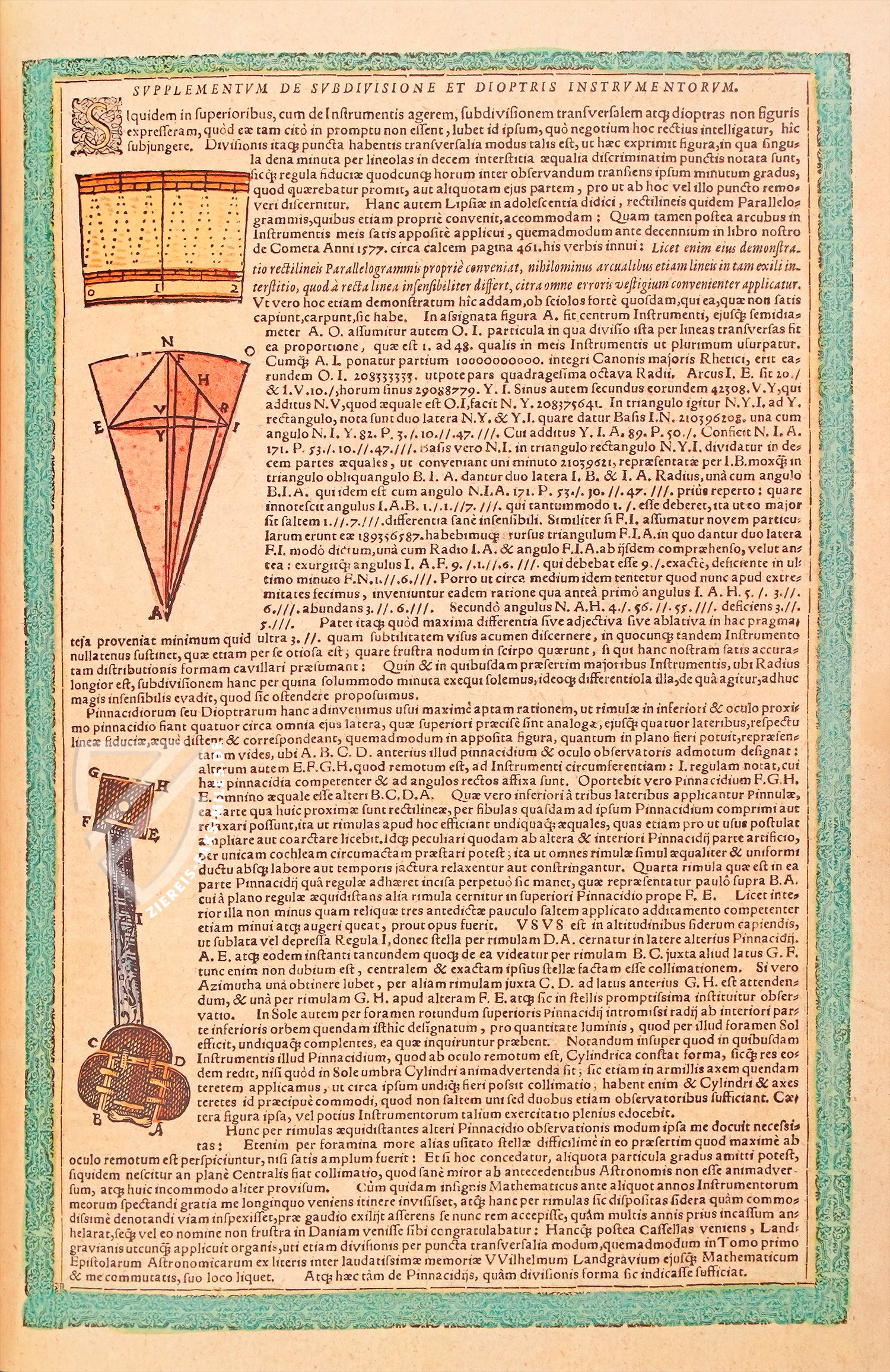 - 22 Illustrationen von Brahes astronomischen Instrumenten (4 Kupferstiche und 18 Holzschnitte), 9 zusätzliche Holzschnittpläne, -diagramme und -titel
