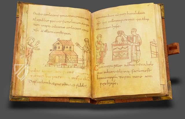 Die Folios 1v -21r enthalten die Legende vom Wahren Kreuz, die durch 18 halbseitige Miniaturen illustriert ist. Die Federzeichnungen, die ebenfalls aus Bayern stammen dürften, sind einfach gehalten, haben ein zurückhaltendes Kolorit und stellen einen der frühesten Bildzyklen nichtbiblischen Inhalts in der Geschichte der deutschen Buchmalerei dar. Es handelt sich um den ältesten erhaltenen Bilderzyklus zu Kaiser Konstantin dem Großen (ca. 272-337) und seiner Mutter Helena. Der Legende nach ließ die Kaisermutter den heidnischen Tempel, der an der Stelle des Heiligen Grabes errichtet worden war, abreißen, damit an seiner Stelle eine christliche Kirche entstehen konnte. Bei der Zerstörung sollen drei Kreuze, der Titulus Crucis mit der Inschrift "Dies ist der König der Juden" und die Nägel, mit denen Jesus gekreuzigt wurde, freigelegt worden sein. Die drei Kreuze wurden zu einem Toten gebracht, der durch die Berührung des dritten Kreuzes erweckt wurde, das man daher für das Kreuz Christi hielt. Helena ließ diese Reliquien dann nach Konstantinopel schicken.