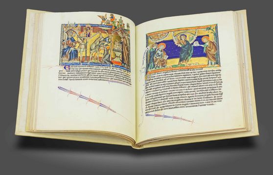 Bildstreifen für das Alte und ganzseitige Miniaturen für das Neue Testament: Ein bildgewaltiges Meisterwerk, geschaffen von den größten Künstler der italienischen Früh-Renaissance