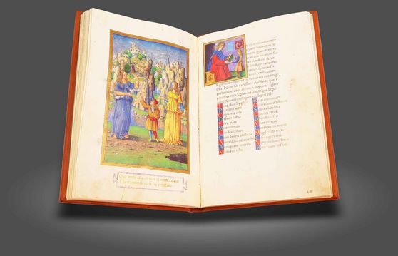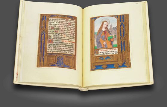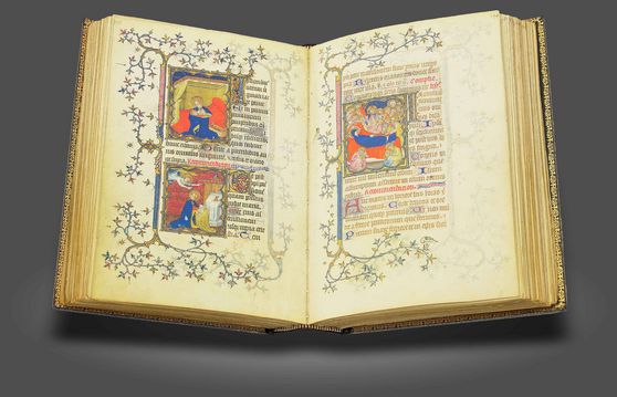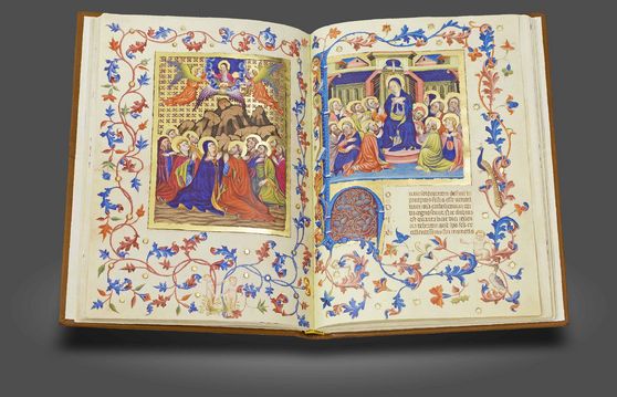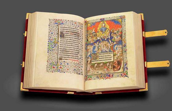 Ein sogar aus der einmaligen Sammlung des Herzogs von Berry herausragendes Buchjuwel: Die außergewöhnlich großformatigen und von Jacquemart de Hesdin ausgesprochen prächtig illuminierten "Grandes Heures" des weltberühmten Bibliophilen