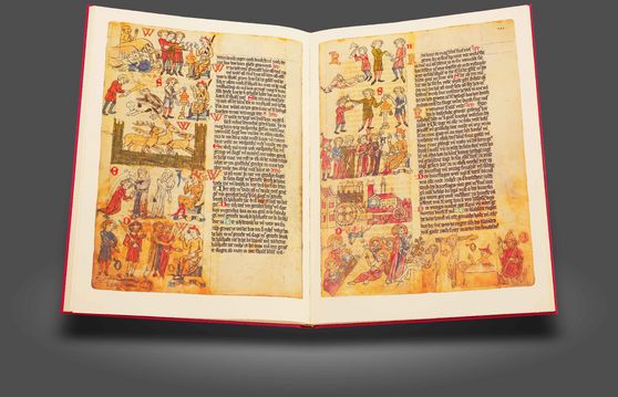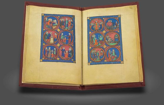 Die Geschichten der Bibel in fantastischen Bildern wie gotische Buntglasfenster: Ein Höhepunkt der französischen Gotik aus leuchtenden Medaillon-Miniaturen in kräftigen Farben und mit Blattgold geschmückt