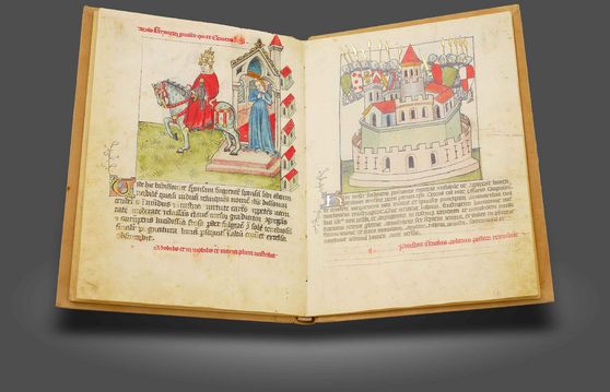 Eine kunstvoll illuminierte Zeitreise ins italienische Trecento: Das berühmte Troja-Epos des Benoît de Sainte-Maure in einer italienischen Adaption mit opulentem Buchschmuck auf fast jeder Seite
