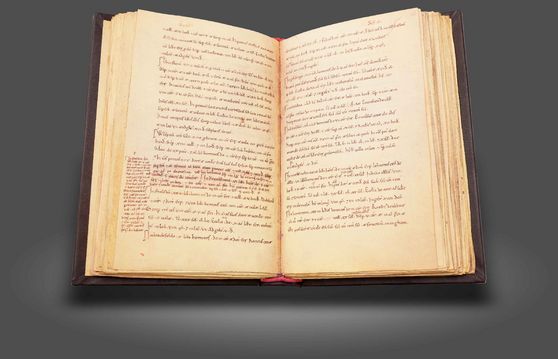Mittelalterliches Alltagsrecht und die älteste erhaltene, deutschsprachige Prosa überhaupt: Der mittelalterliche "Vorgänger des Grundgesetzes", geschmückt mit nicht weniger als 776 gotischen Miniaturen