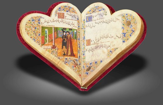 Einst im Besitz der Familie Rothschild und von einzigartiger Form: Das berühmte herzförmige Gesangbuch mit 44 Liebesliedern für Bischof Montchenu, einem klerikalen Romantiker am französischen Königshof