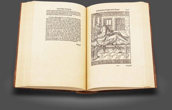 Das Auge u. a. als Klappbild in Georg Bartischs Meilenstein der Medizingeschichte: 92 faszinierende, teils mehrschichtige Holzschnitte im ältesten umfassenden deutschen Lehrbuch und ersten Werk der Renaissance zur Augenheilkunde