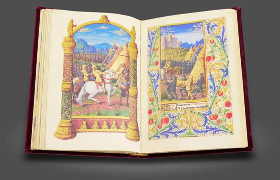 Der wohl umfangreichste Höhepunkt der flämischen Buchmalerei: Wunderschöne Illuminationen aus beeindruckenden Miniaturen und fantasievollen Bordüren auf fast jeder der sagenhaften 1.664 Seiten, geschaffen von den bedeutendsten Meistern der Zeit