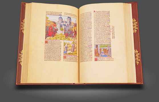 83 goldgerahmte Gemälde-Miniaturen aus der Werkstatt des großen Jean Colombe: Eine prächtig illuminierte Adaption des wohl berühmtesten Epos aller Zeiten und ein wunderbares Zeugnis des höfischen Lebens in Frankreich um 1500