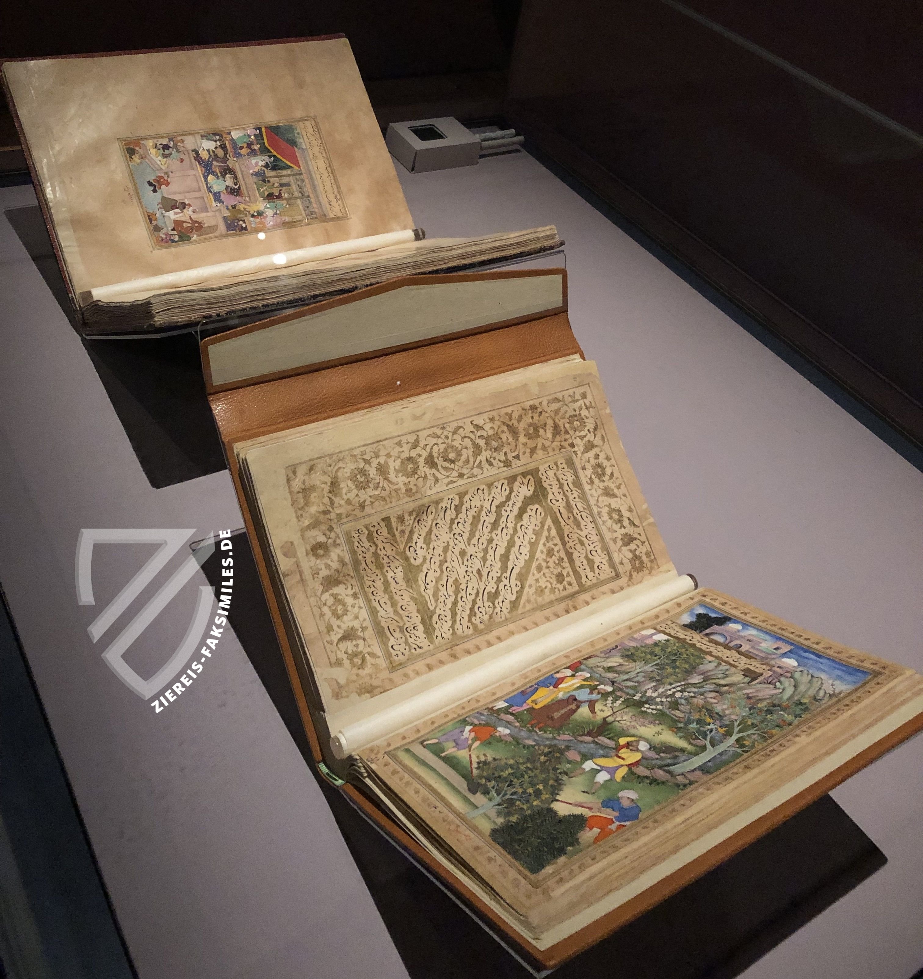 Gleichzeitig zeigt das V&A eine weiträumige Sonderausstellung zur Kunst unter der Moguln-Dynastie, die im 16. und 17. Jahrhundert Zentralasien beherrschte. In mehreren Etappen wird der Entstehung des charakteristischen Stils dieser Ära nachgespürt, der vor allem durch höfische Werkstätten etabliert wurde, die nicht nur kunstvollste Buchkunst wie das Hamza-Nama hervorbrachten, sondern auch weithin berühmt waren für Arbeiten aus diversen Materialien wie Textil, Holz, Schmiedewerk, Perlmutt, Edelsteine und Keramik.